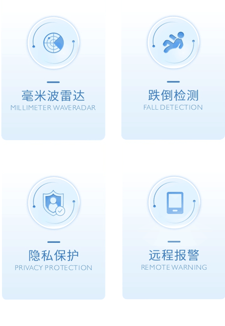 采用雷达探测,非摄像头跌倒分析,不产生视频图像或数据,隐私得到有效保障。