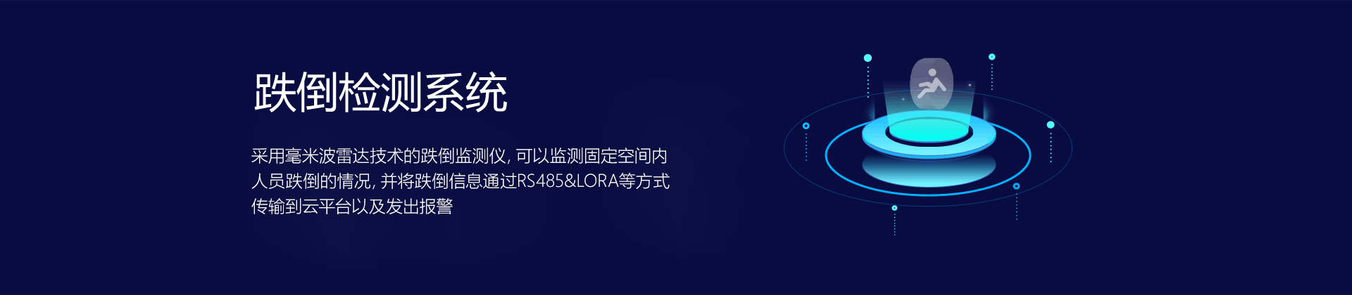 采用毫米波雷达探测,设备内置跌倒姿态分析算法,实时跟踪区域内的人体目标,通过对人体姿态变化的分析异常状态 (跌倒)并及时发出报警信息。