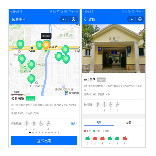 小程序/APP主要是为用户方(民众)提供更便利的用厕服务,包括周边最近的厕所搜索、路径导航指引、厕所繁忙度信息等查询。 小程序/APP软件支持功能开发定制。 小程序可嵌入到第三方公众号中做跳转。
