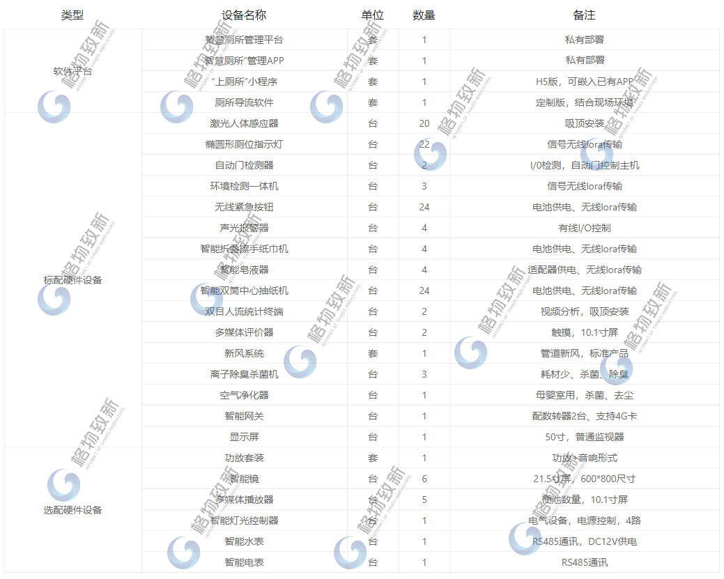 厕所的使用人员为出行旅客,高铁站内空大导致厕所分散,具有使用人数多、人员密集同时具有异味容易凝聚的特点;由于厕所数量多且分散,各厕所之间的导流功能尤为重要;另外,出行的旅客中经常会有特殊人群的存在,对于特殊人群的检测和求助也是高铁项目的主要特点,同时高铁站作为旅客出行的服务部门,需要有收集旅客诉求和改进服务方向和效率的需求;高铁站采用专网专线供网方式,需要部署私有云形式的管理平台,用于车站内的厕所管理;